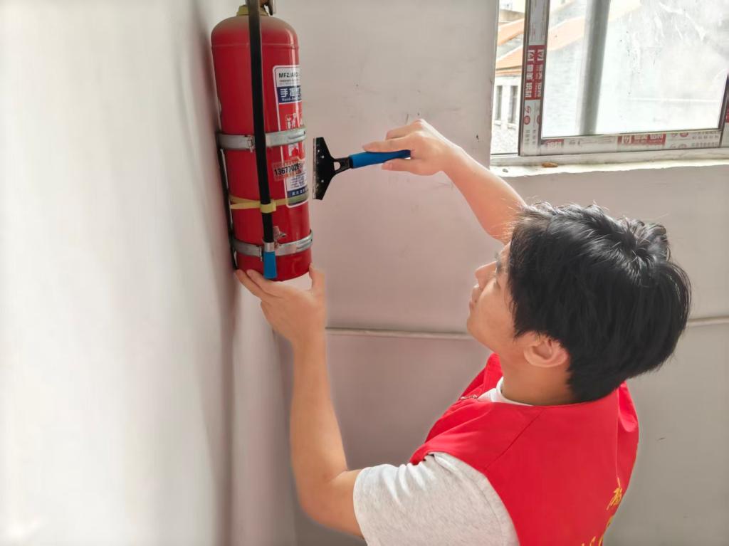 在宣传的同时,志愿者们同步开展消防安全隐患排查行动。针对辖区内楼道、商铺等重点区域,志愿者们仔细检查灭火器等消防设施的完好有效性,对设施上的小广告、污渍进行清理维护,确保消防设施时刻处于良好可用状态,筑牢社区安全防线,从源头上防范火灾事故发生。