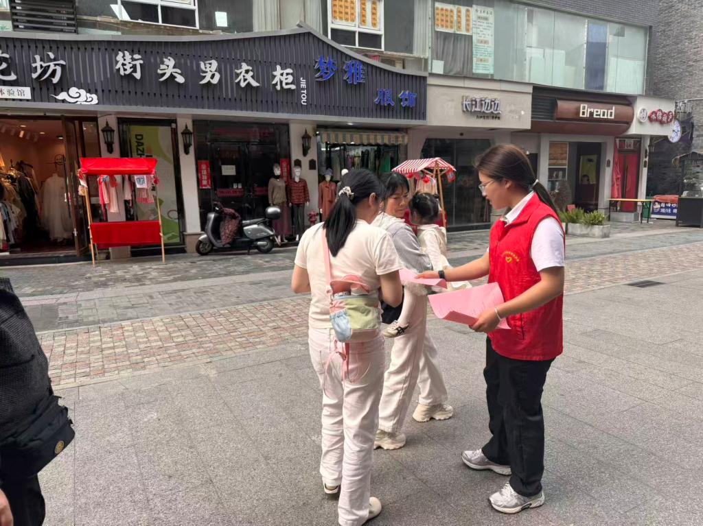 活动中,大学生志愿者身着红色志愿马甲,深入辖区商圈、沿街商铺与居民街区,开展向过往居民、商户工作人员发放市民公约活动,耐心讲解公约内容,做好日常安全防护措施,确保宣传内容入脑入心;针对沿街商铺,志愿者们逐一上门宣传,叮嘱商户落实主体责任,做好日常安全防护。