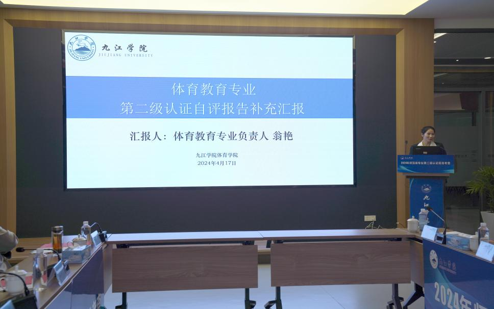 4月17日上午,认证见面会在九江学院厚德楼101-105会议室举行,专业负责人翁艳向专家作体育教育专业自评报告补充汇报。